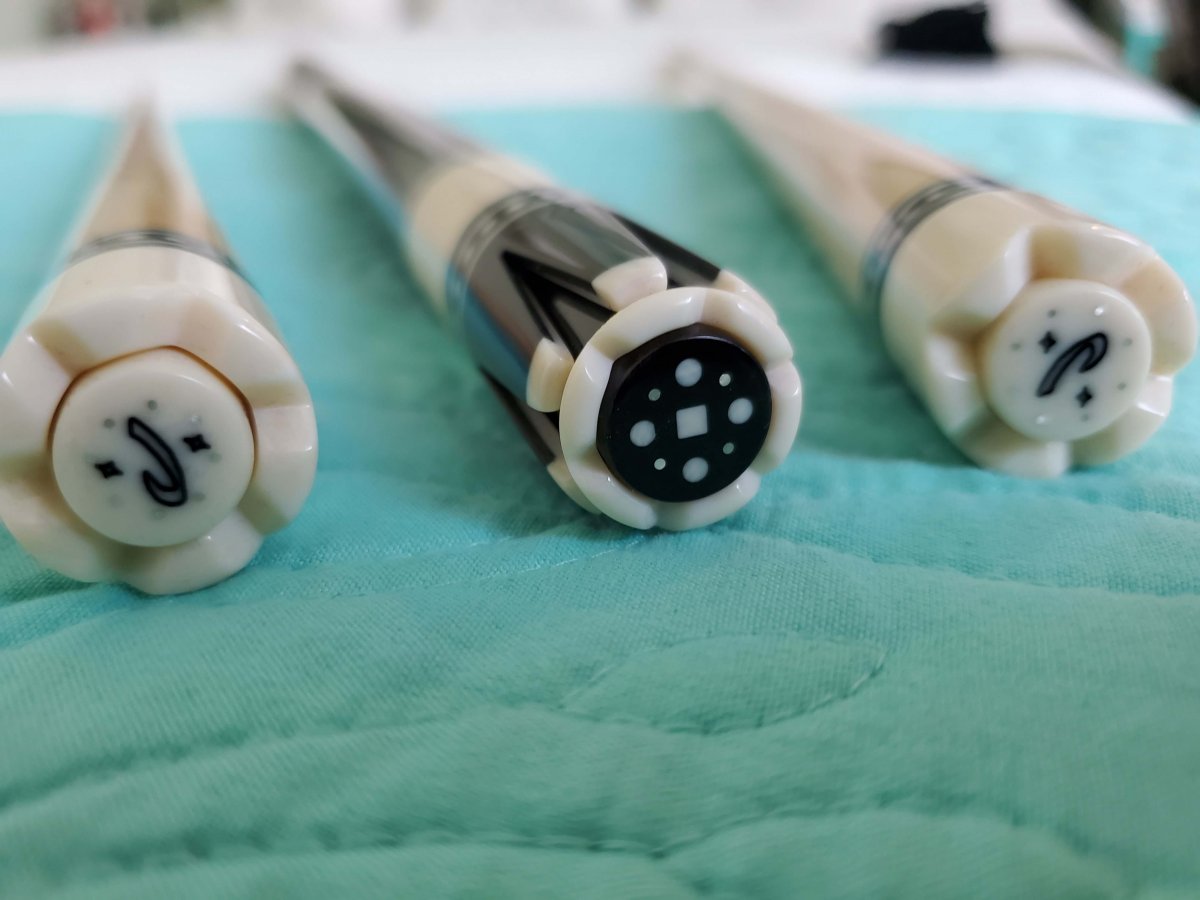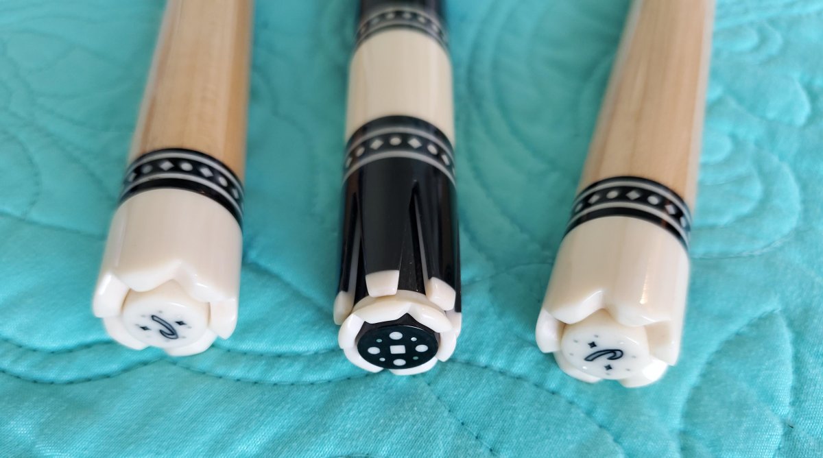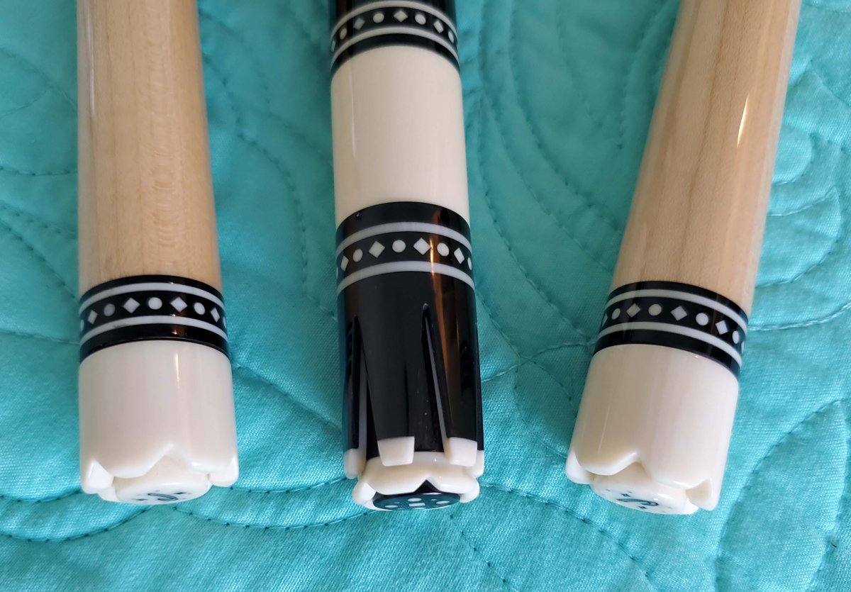 This is a beautiful Custom Dave Jacoby Tux Cue, originally purchased years ago from the "Walton" collection. Alton caps. Rare and most likely not being made any longer. They are all the natural materials of course. 100% guarantee, 24hrs to return if not satisfied. perfect condition. you pay return shipping. $4000.00 { pic on scale had wrong setting }