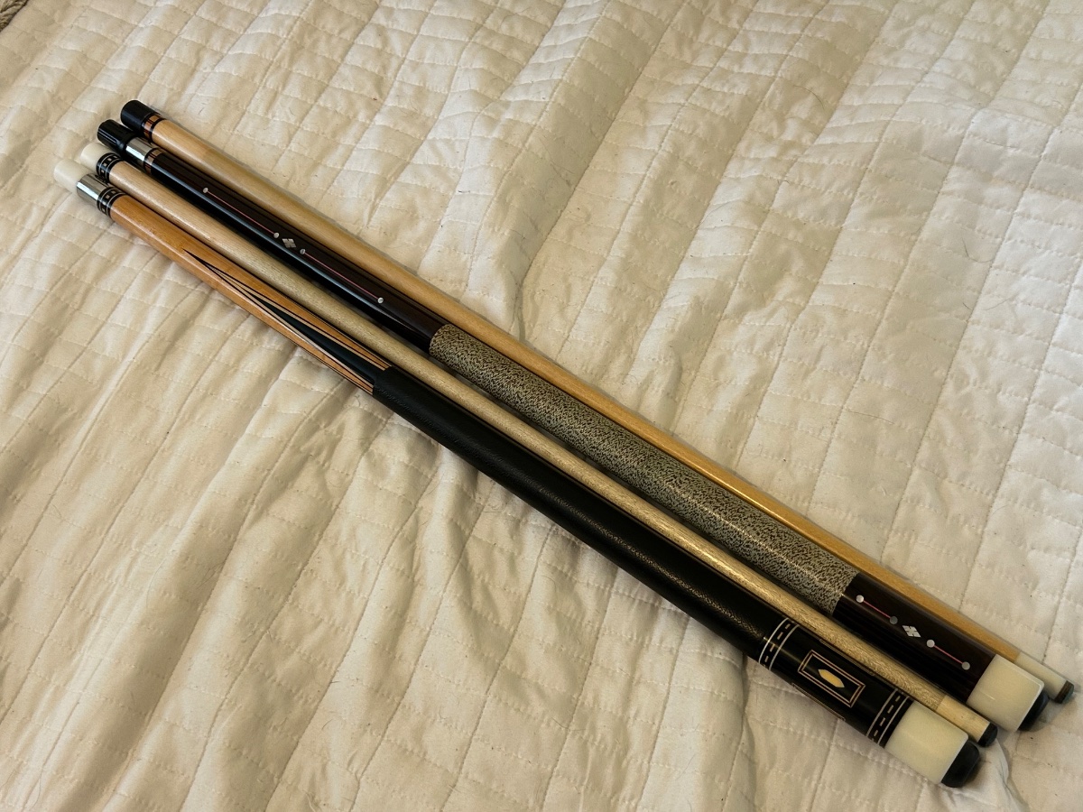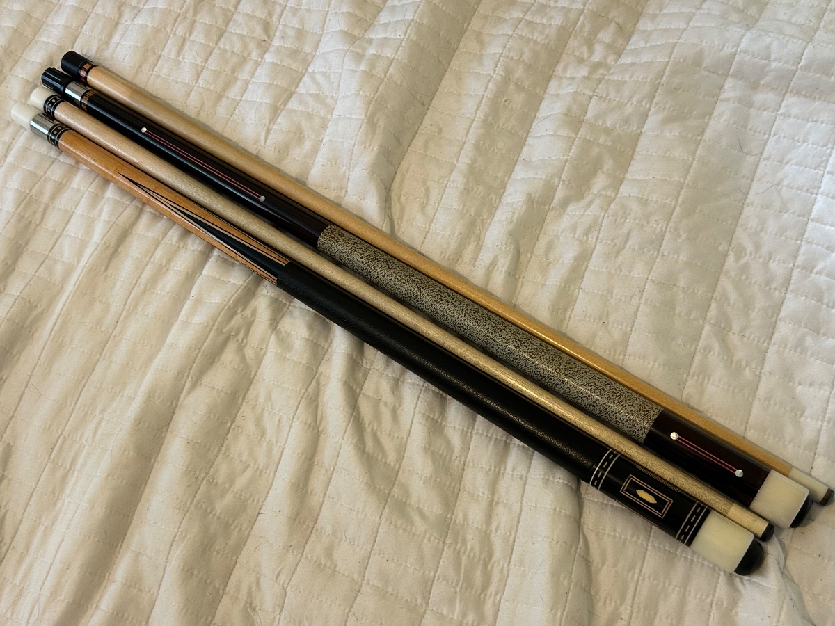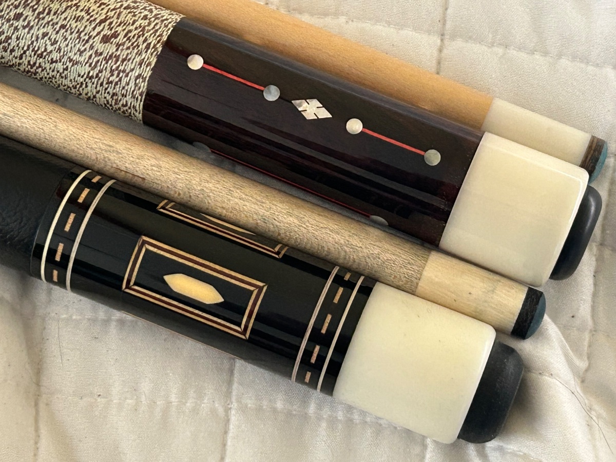 While I have a basic idea, I am much better at Bushkas, SW, and TS values and not so much on Gyses so I'm asking for those *who know* these cues to chime in with what would be fair market pricing for this nice one. Figure w/ 2 orig shafts 12.7 or larger, all straight and very nice cond cant say 100% but does not appear to be refinished but if it was it has to have been over 24 yrs ago, however, Pete Tascarella did put the smooth black leather wrap on approx 15 years ago and it's perfect.
