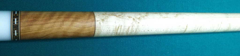 The following pics are from two different sides of one of my bird'seye maple cues. It has tons of bird's eye's and illustrates what I am saying perfectly.