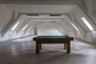Often the only items left behind in abandoned buildings are the heavier items on the higher floors, such as pianos – and on this occasion a lonely pool table left in an attic room.