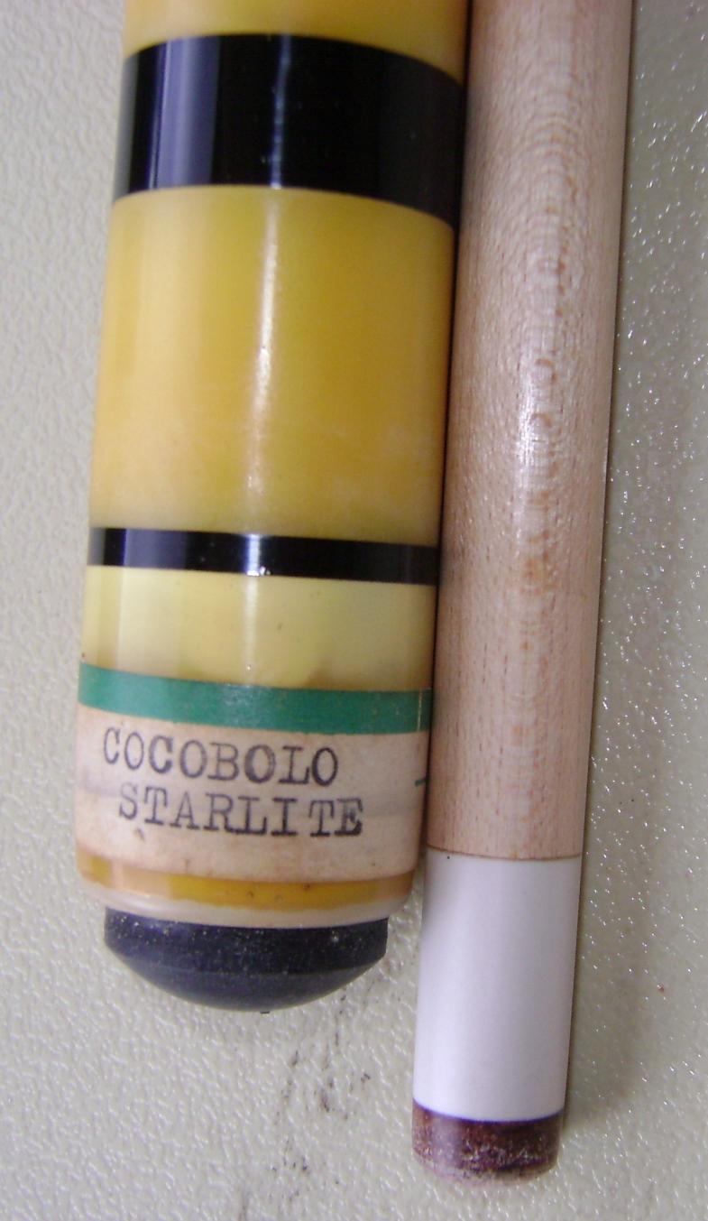 The "Cocobolo Starlite" was one in Abe's "catalog." That cue has the same joint rings, wrap, buttcap and bumper as the EBay cue in question. I'd be surprised if the EBay cue doesn't have a small pin, too.