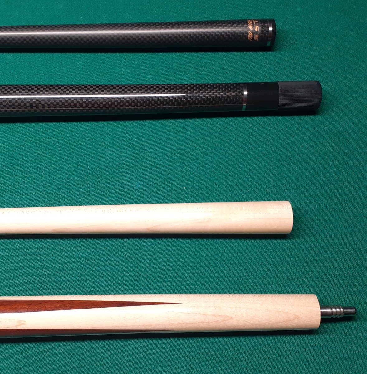 Action 4 point Jump Break excellent condition phenolic tip. Asking $SOLD shipped CONUS. Cuetec break cue model CT273 excellent condition leather tip asking $SOLD shipped CONUS. Action butt 13.87 oz. Shaft 4.20 oz. Total 18.07 oz. Cuetec butt 16.47 oz. Shaft 4.50 oz. Total 20.97 oz. Ferrules appear to be a full 13 mm on both cues. These are stock cues not altered in any way. Very little play on these cues. Both dead straight. Good solid cues.