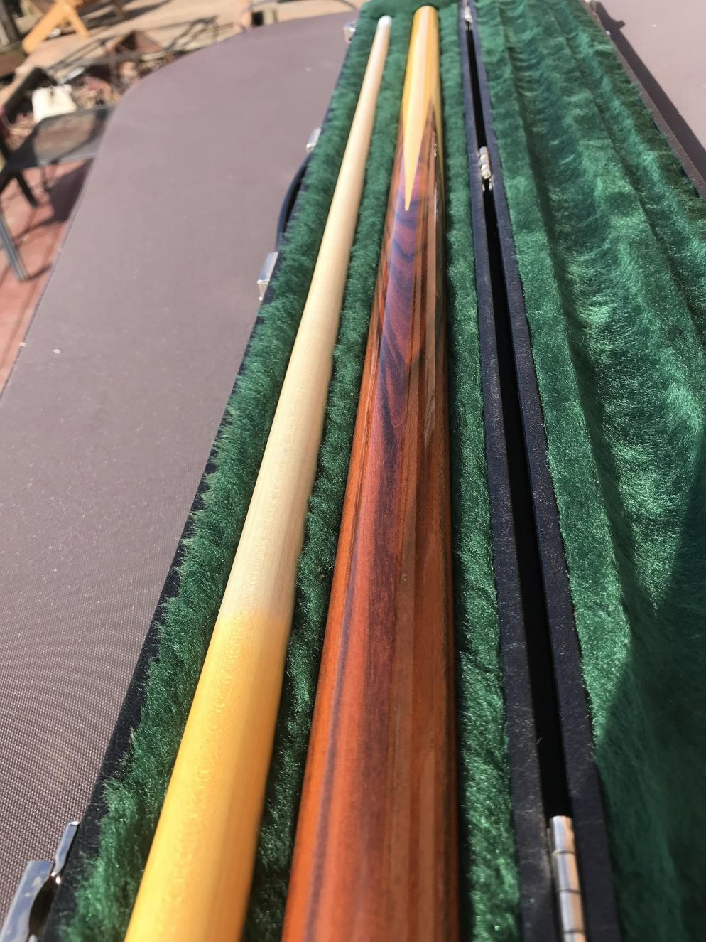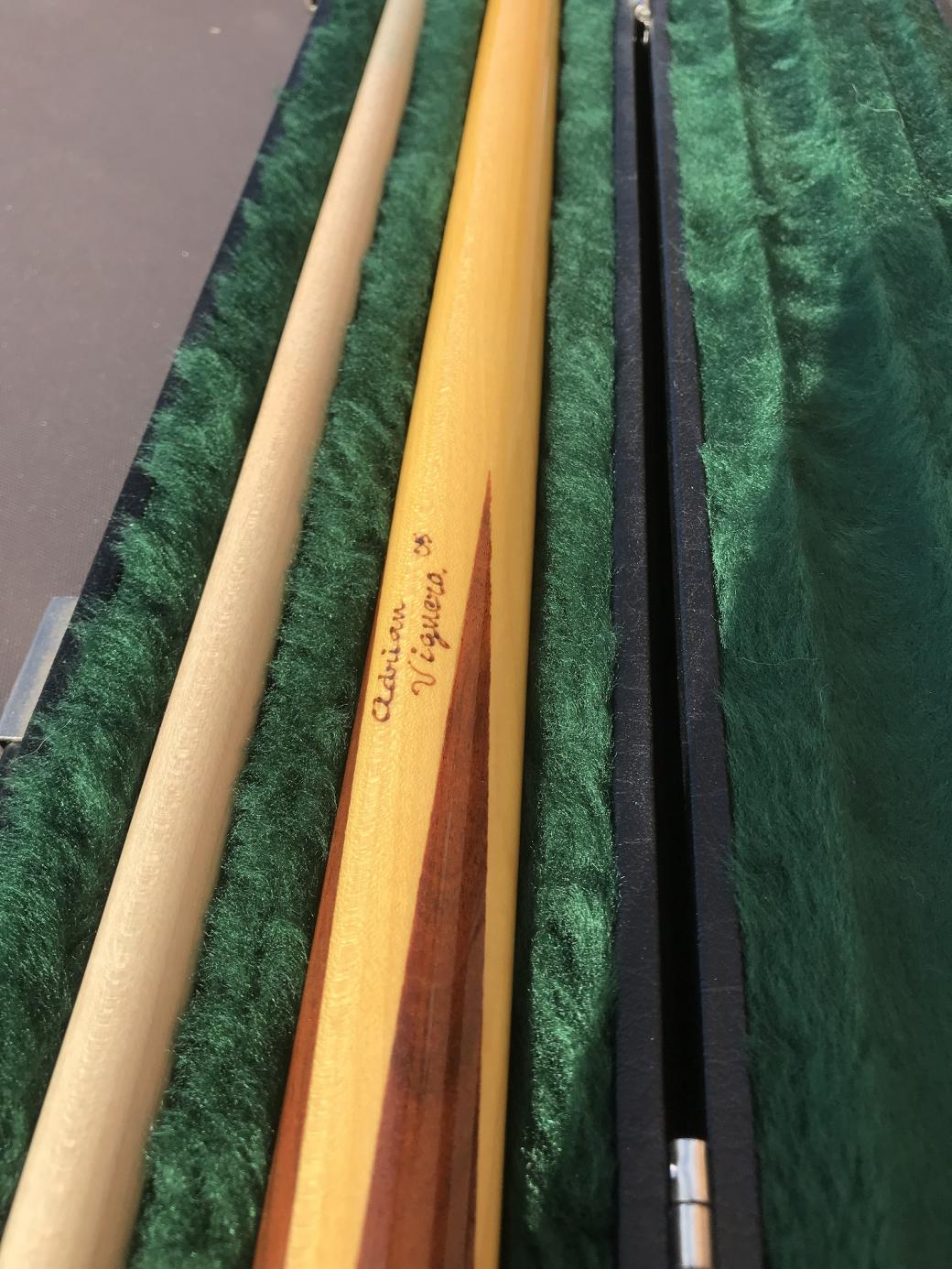 I have for sale a beautiful and rare Adrian Viguera cue. Cue is 58" long, butt straight, shaft straight in excellent lightly played condition. I've had it for about 10 years stored in a case. Shaft 4.3 ounces and a full 12.9mm. Butt, 14.6 ounces. No damage, great looking cue. First 375.00 shipped in conus.