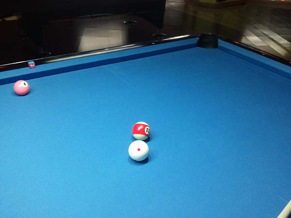 People have a tendency to stand right up at the table with shots like this. That's the worst thing you can do on any type of shot, but especially close shots when addressing them. My advice would be to stand a few feet away from the edge of the table on these types of shots and do all the working out from there.I have found these to be extremely difficult to do.