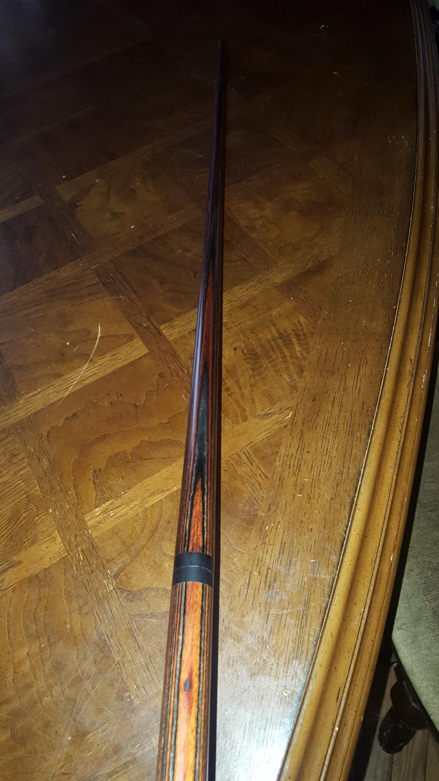 Alex Brick 2 piece jump. Dymondwood $450 shipped 2 piece Alex Brick Dymondwood jump cue Tip. 13.10mm Weight.11.80 oz 3/8-10 pin. 41 1/2 in long. Applejack color. $450 shipped Pm for pics