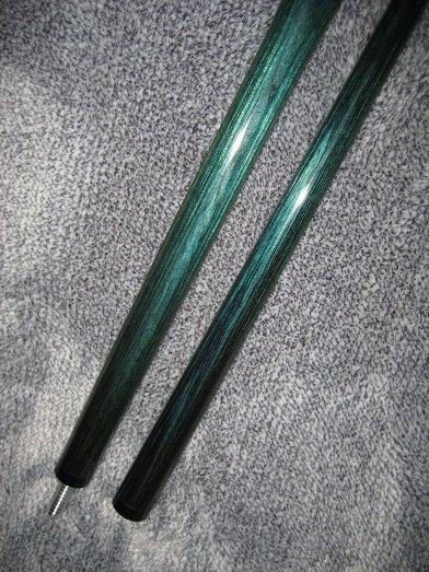 Offering for sale in excellent condition one green diamonwood Alex Brick jump break. Cue is 18.5oz. Shaft is 13mm. These cues are known for crushing racks. Hard to find. The time to buy one of these is when you find it for sale. Sold.. 509 919 5224
