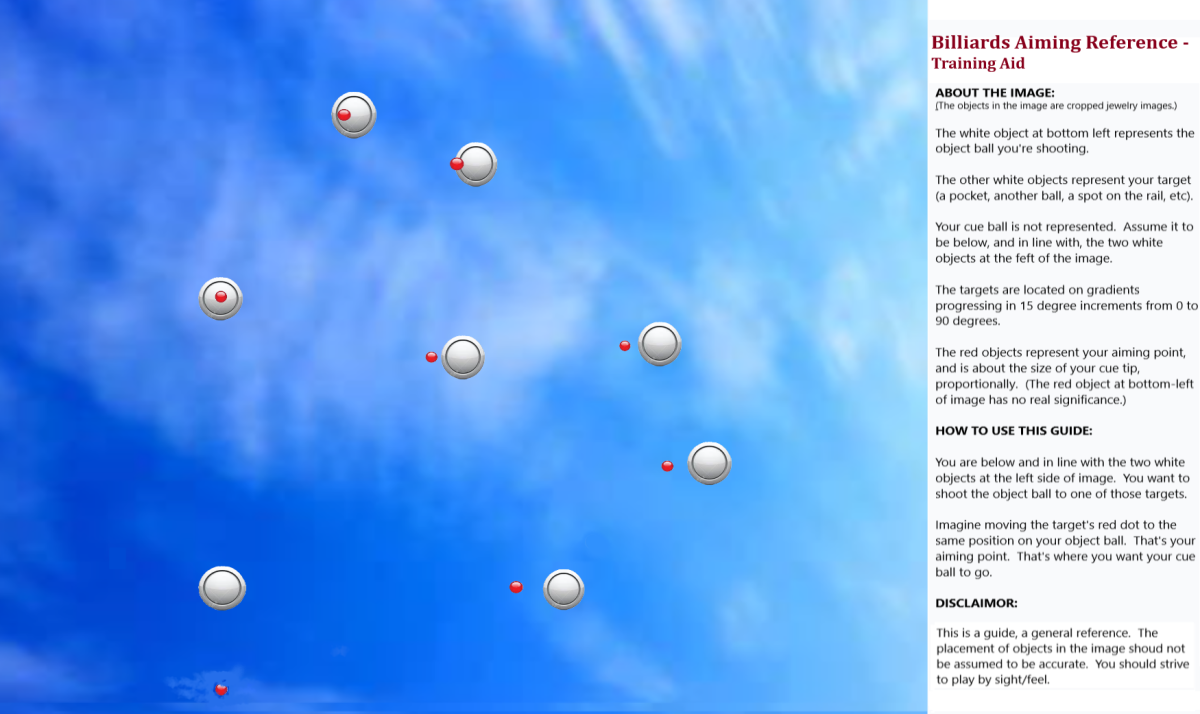 If this posts right, one of the totally fake images has instructions on the right side that tell how to use this image as a training aid for aiming. Another image can (hopefully) be copied and used for desktop wallpaper. The other is suitable for 81/2" x 11" printing. (I designed it. No copyright or any of that stuff.) The vivid imagery helps to etch it, section by section, into your memory for easy recall.