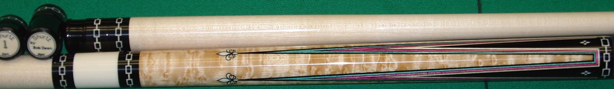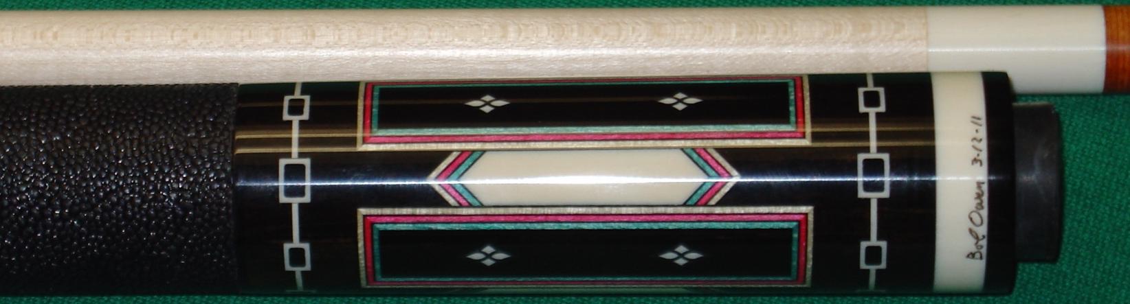 Bob Owen Cue That is one of the nicest cues you've built that I've seen. The colors and detail work on the veneers and inlays are outstanding. You are tempting me to buy another cue! James