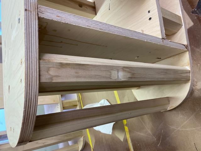 Base frame was not leveled properly or that is the worst sagging Gold Crown frame I have ever seen. Nice shims though.