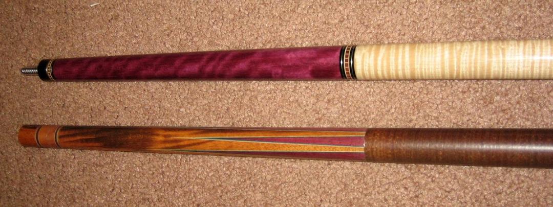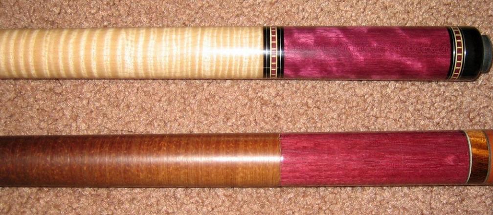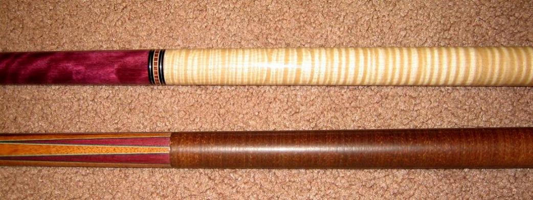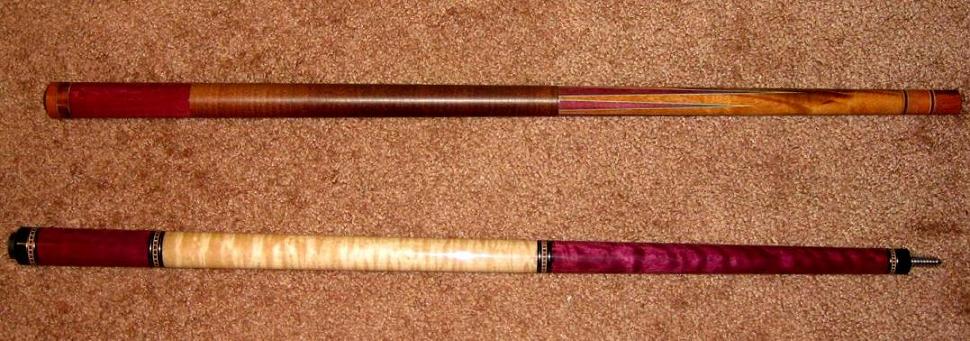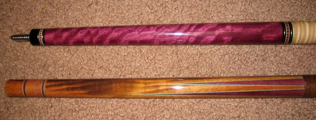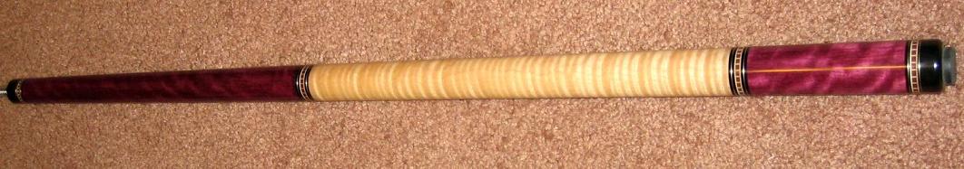 , wasn't I asking for a cue just like this a little while back? purpleheart with a NICE maple handle? you lucky dog!!! I'll bet that thing plays REALLY nice!! I'm not a fan of how thin the coker cues are, but that cue LOOKS great! nice score in picking that up!! nice cue and hope you enjoy it, Jeff