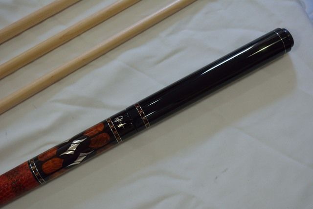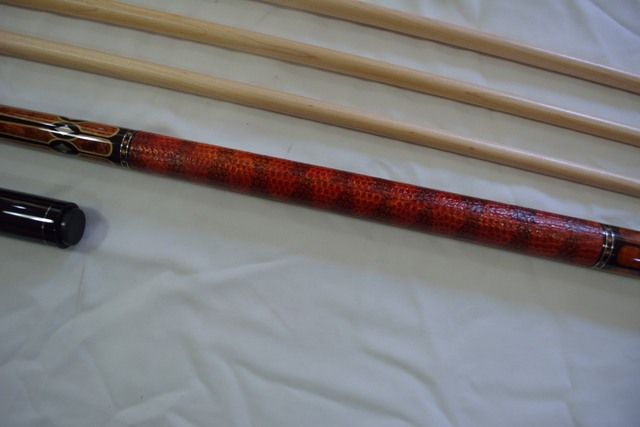 the latest im made for a great guy from IL...burl, ebony, silver and sea snake skin wrap to match the overall look of the cue.. Thanks for looking, Al