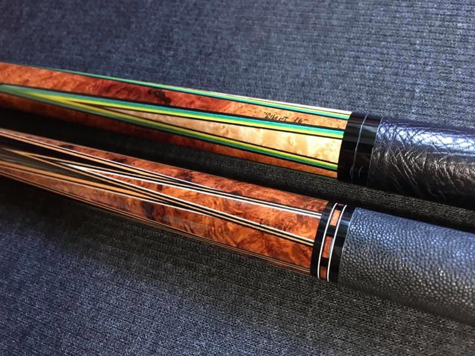 Anybody else love amboyna? Couple of Gilberts, the 4pt is a jump/break. 8-point was built in 2005.