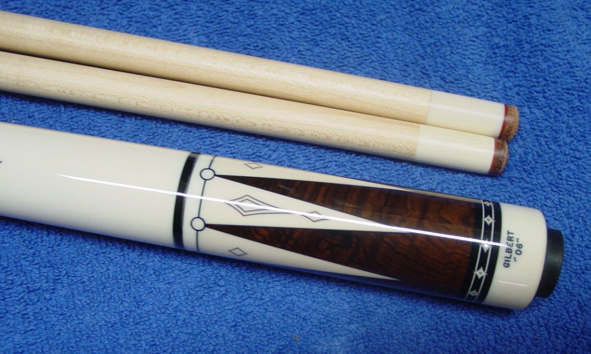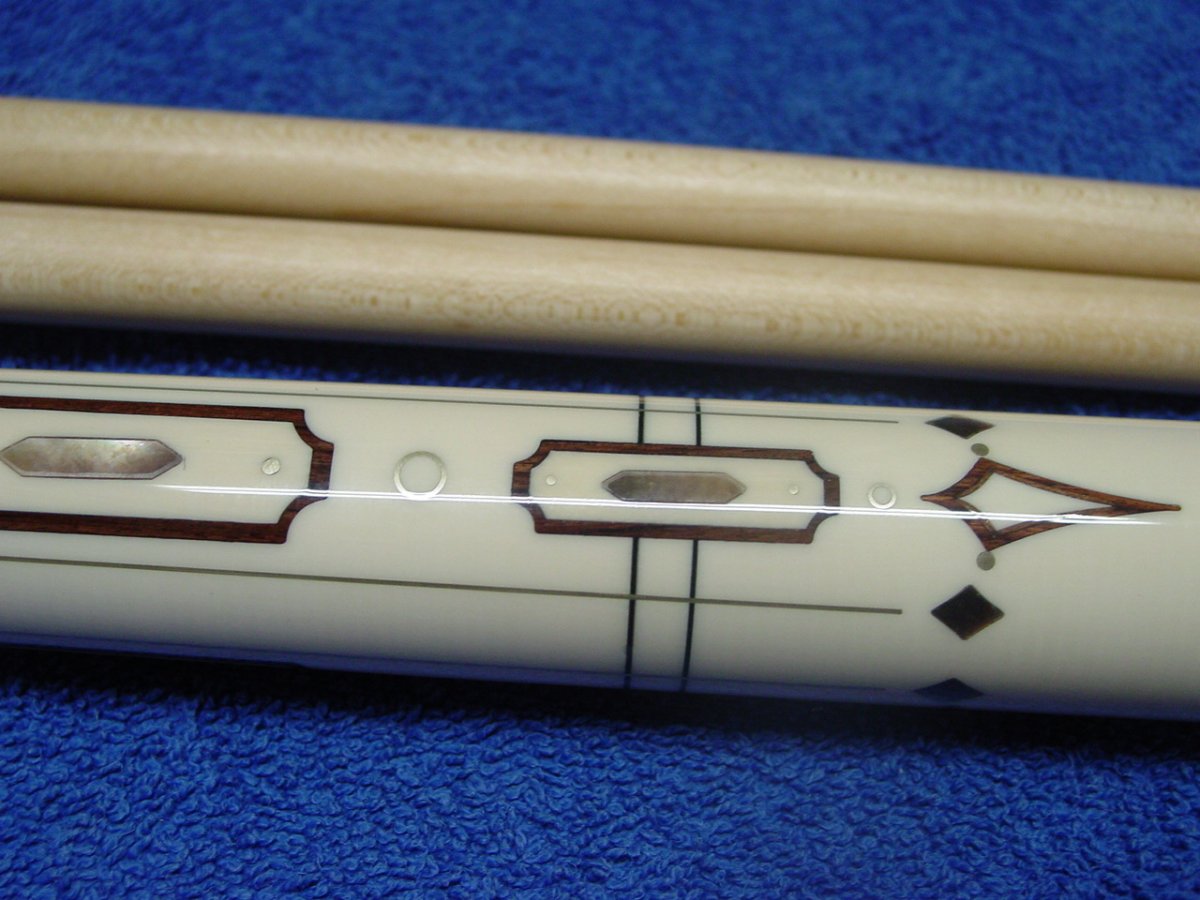 This cue is Andy's second ivory handle cue. It was made in 2006 and purchased at SBE. The wood is brazilian rosewood. It comes with a special Whitten case.