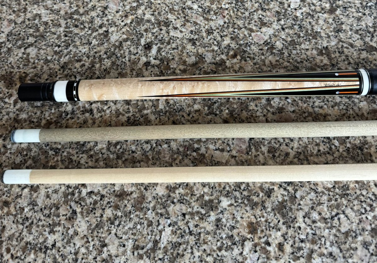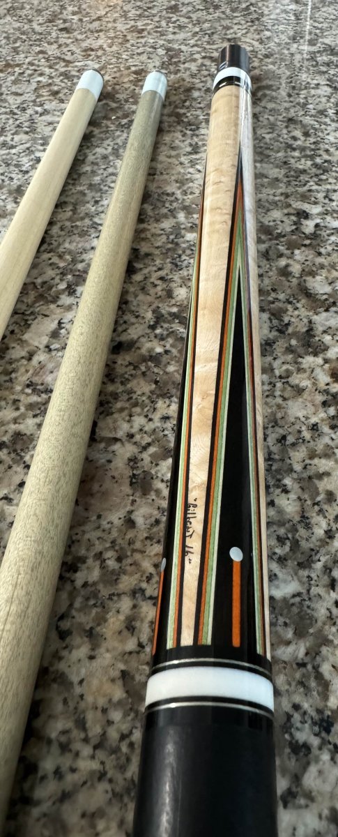 Selling this beatiful and I believe 1of1 Andy Gilbert cue. Out of all the cues I have ever owned (Southwest, TAD, Tascarella, etc.) this is probably the best hitting cue I have ever played. Cue has normal wear few non visible dents on the butt and son chipping on the bottom. One shaft has normal wear and the other has never been played. Approximately 19.2 ounces With either shaft. Priced accordingly.