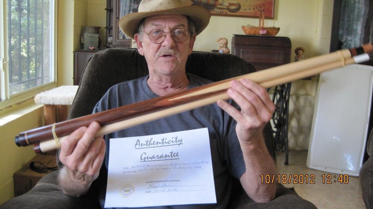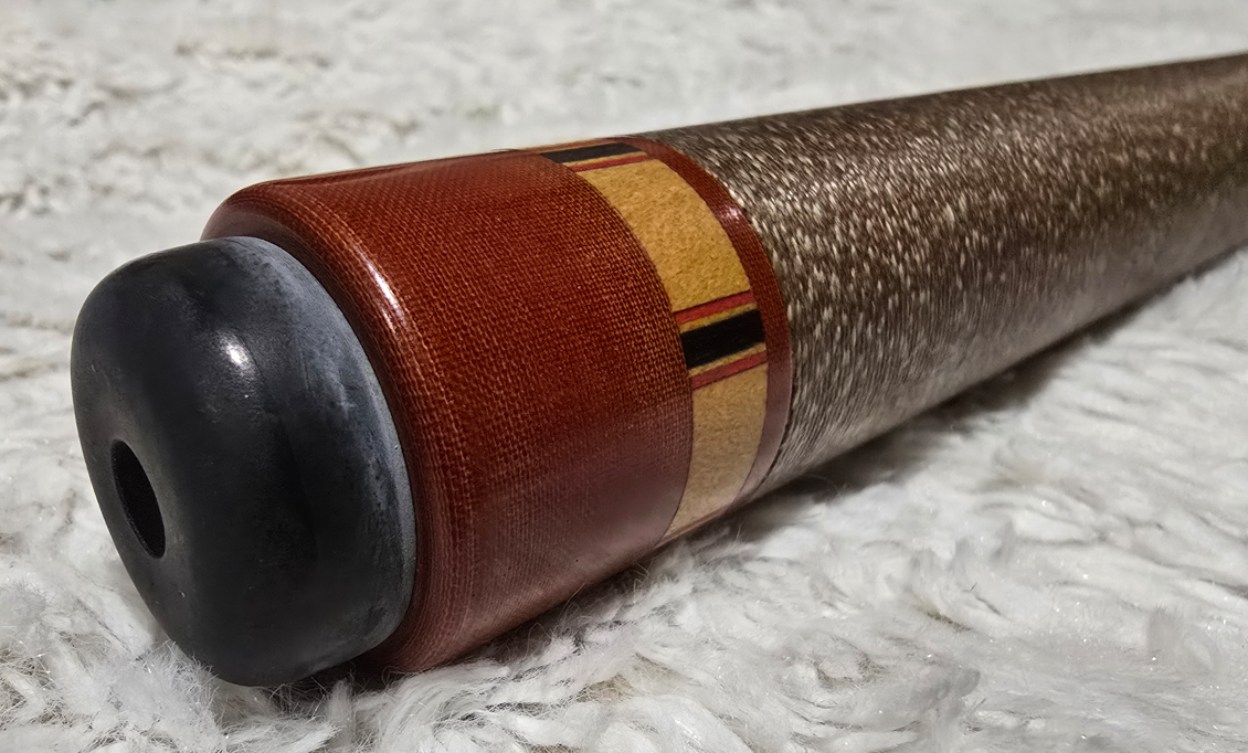 I purchased this cue around 2005 In Orange County CA, from someone off Craigslist I believe. It has no markings anywhere. It appears the cue has some unique features. The bumper screws into the weight bolt with a 3mm allen head, the Irish linen wrap is very far back with basically no butt sleave, just a cap, it has 4 points with no veneers and the finish it more a satin or matte sheen. It also feels thin, perhaps just a penetrating sealer was applied? I was told by someone it might be a Larry Stratton, and it does appear to have a similar bumper. He was local to the area and the time frame lines up. Any additional info and a suggested price would be appreciated. Thank you