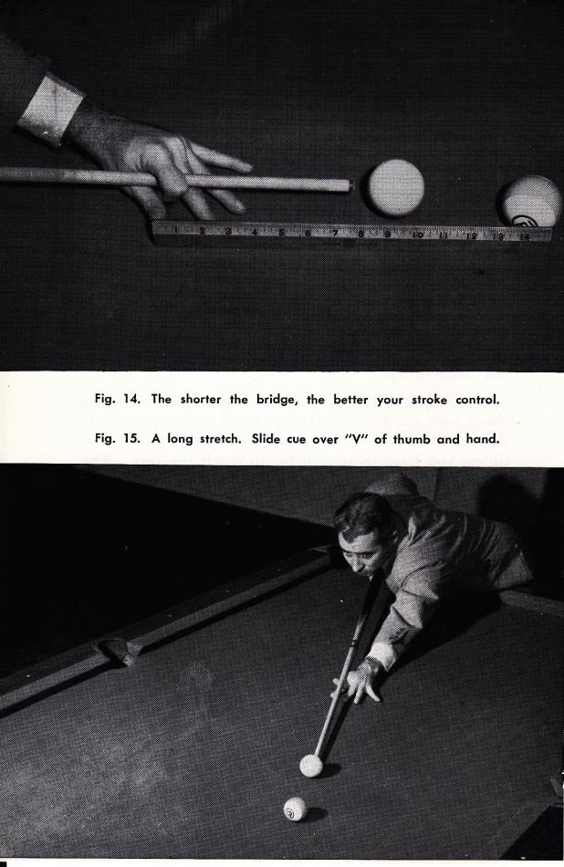 I just got back from the tournament in Olathe, KS. And basically to a man, every super high level player there held the cue towards the very back, and had a relatively long bridge. Mr. Brumback is giving out great advice to those who aspire to play pool at a high level.