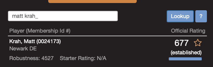 As I said before, you can look up his tournament results for national level. For local Philly level, you MUST carefully inspect the player's list. Because 15 years ago there was 15 guys every single week Matt's speed or better playing, and full fields of 64. Today, he is one of 3 or 4 guys that speed.