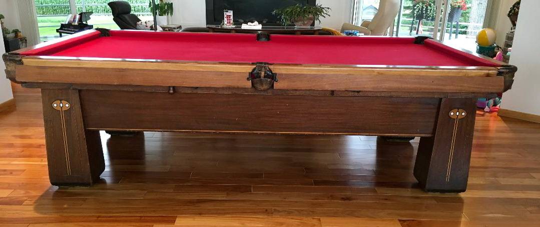 One thing to note: this table will never play like a modern table, as it has a T-rail design. In order to replace the cushions, you will need to have someone properly modify the rails, to accept a modern-day K55 cushion. This generally is not a cheap process. You'll probably also want to tighten up those bucket pockets while you are at it.. I'm thinking no less than $1200, to have a reputable person perform the work for you. That does not include tearing down and moving the table (if needed). It also does not include any restoration work.