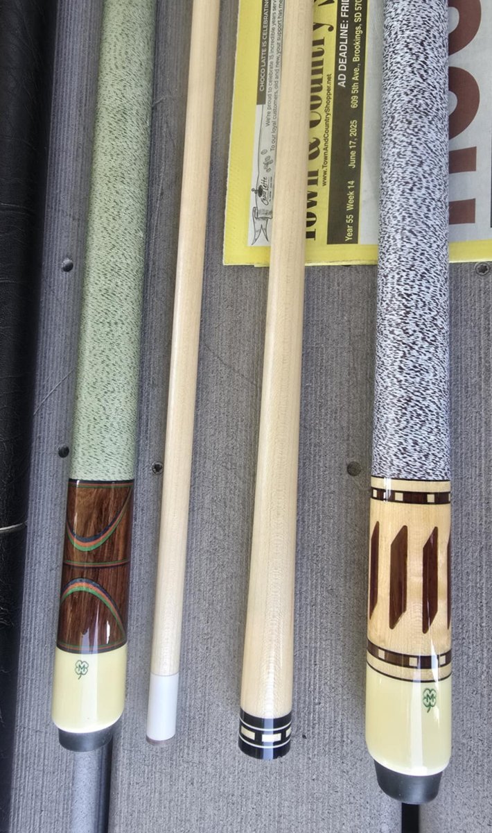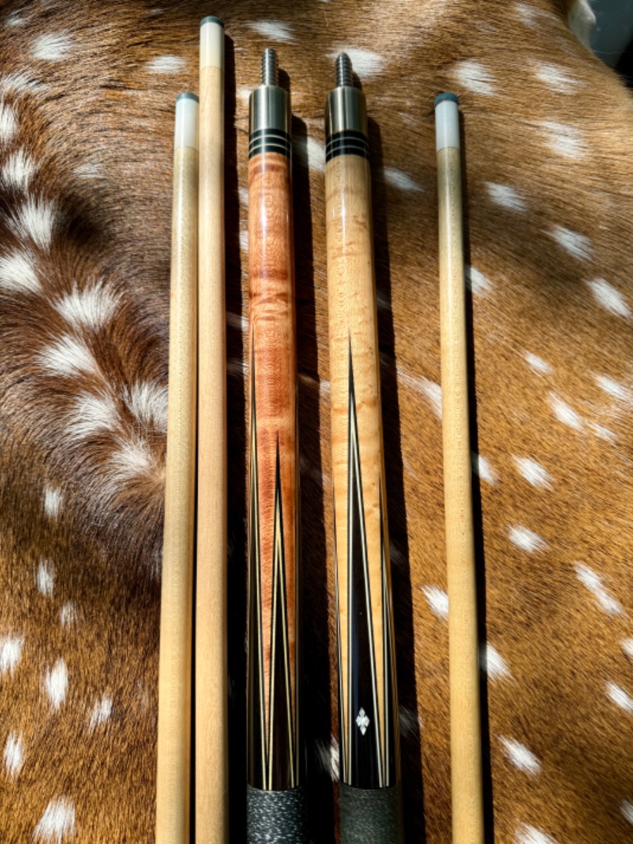 Well....I gave that fancy McDermott a shot. I didn't like the hit at all. Someone will - but I guess I just like what I like. Back to my Schon. It's like night and day difference. Trading the fancy McDermott and another cool JOSS to another buddy for a Schon R8 Dice Cue. Can't wait to get that baby in my hands.
