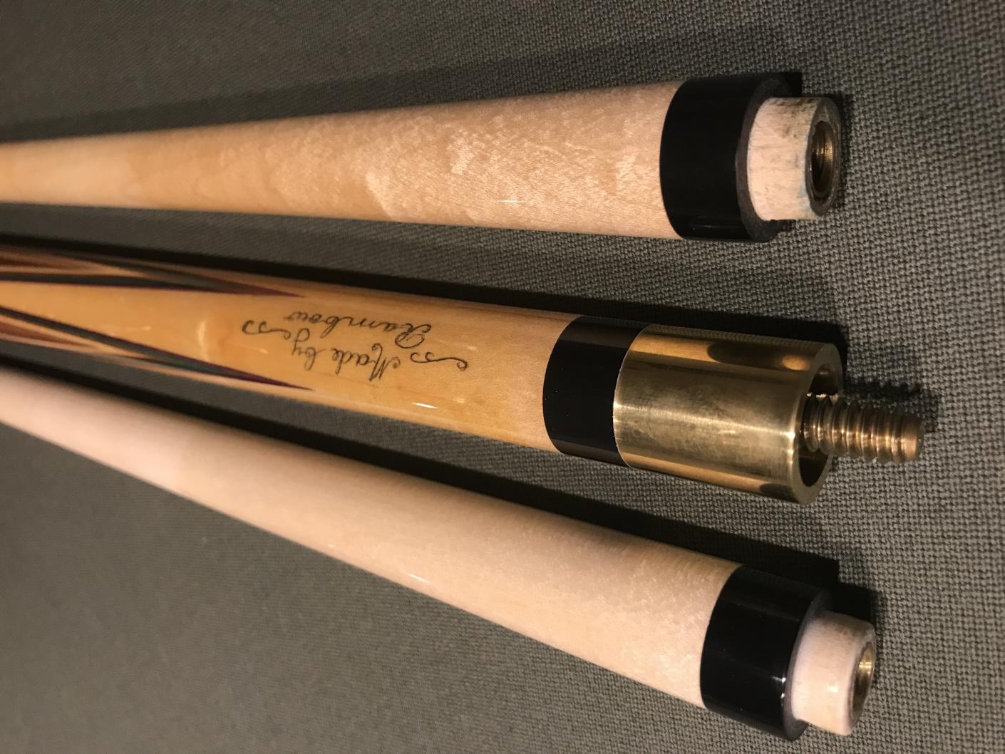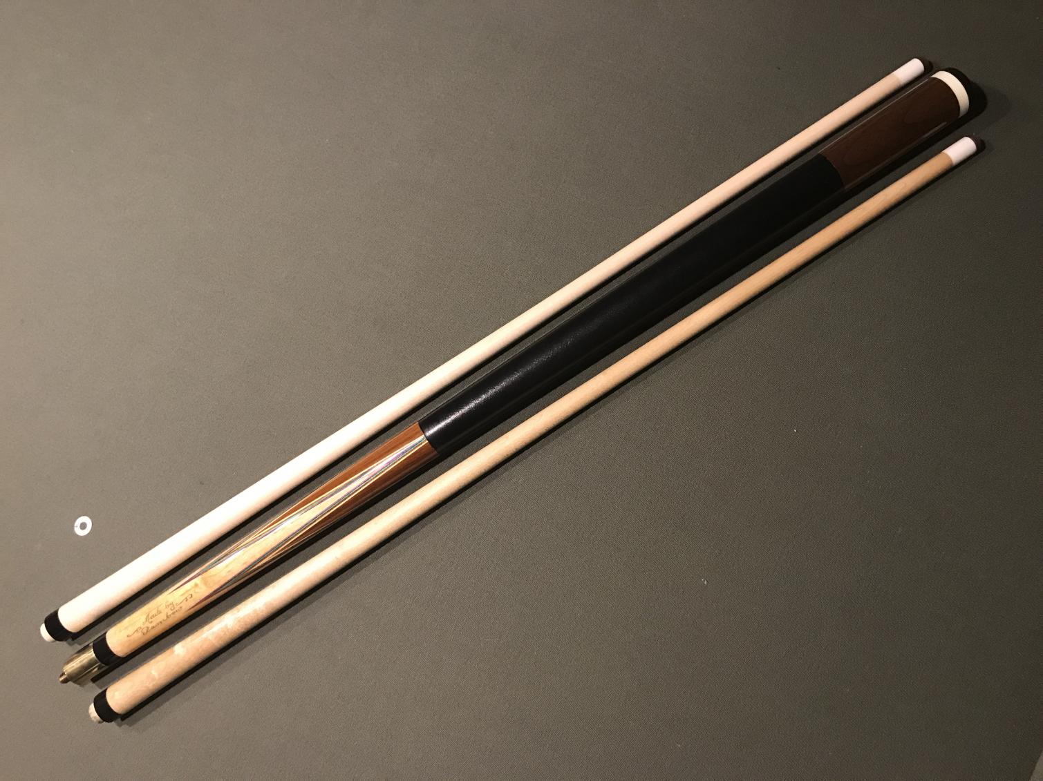 too many parts dont fit his work. could be the refinish changed the cue a lot from original. the sig. doesnt look right either. like if it was real the refinish ruined it and the guy made it back him self.