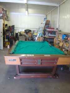 this 9' brunswick is for sale cheap. he says it's a "GA" model. it looks like it's the gold crown's ugly sister. regardless, it might suffice until i find what i want. if it has good slate, it's worth $200.00. when i needed slate for my GC1 i would have rushed to buy it. i'm assuming that it has a similar frame to a GC but i do not know. can 't find any info on a "brunswick GA". anybody know anything about these tables before i drive all the way out there?