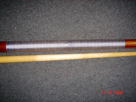 looks like a titlest blank. only a white circle inlay on butt sleeve and a white butt cap. got a double brass joint with the screw coming out of the joint on the shaft.
