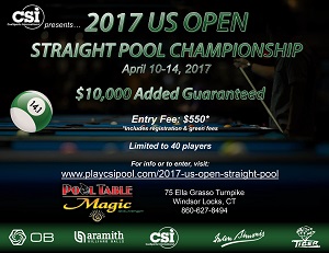 For information or to enter, go to http://www.playcsipool.com/2017-us-open-straight-pool.html.