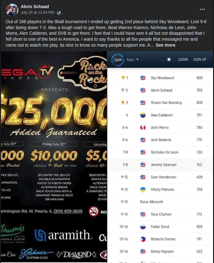 My fav hypocrisy when regarding "pro" and league...: Abrin Schaad the winner of the top APA tier this year in Vegas