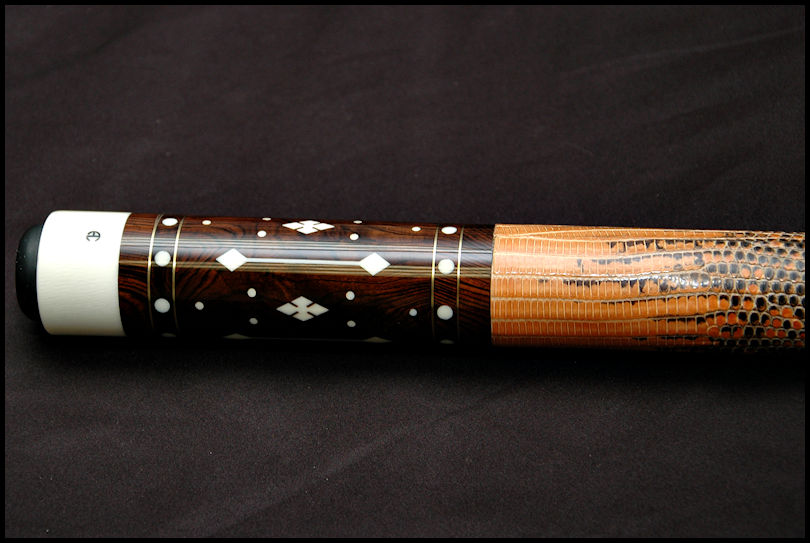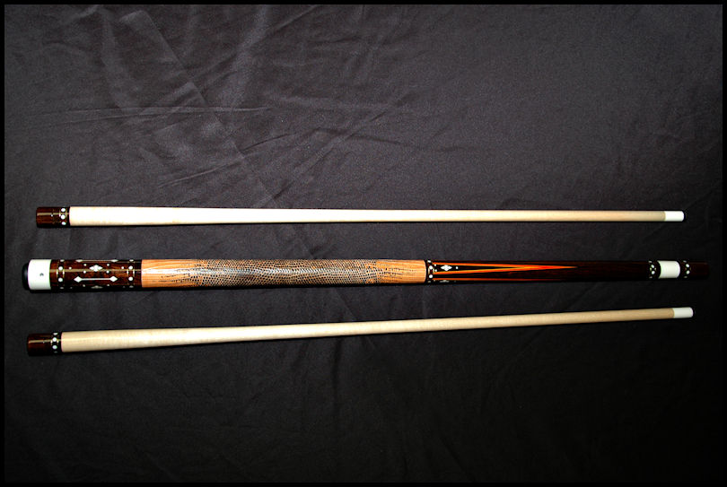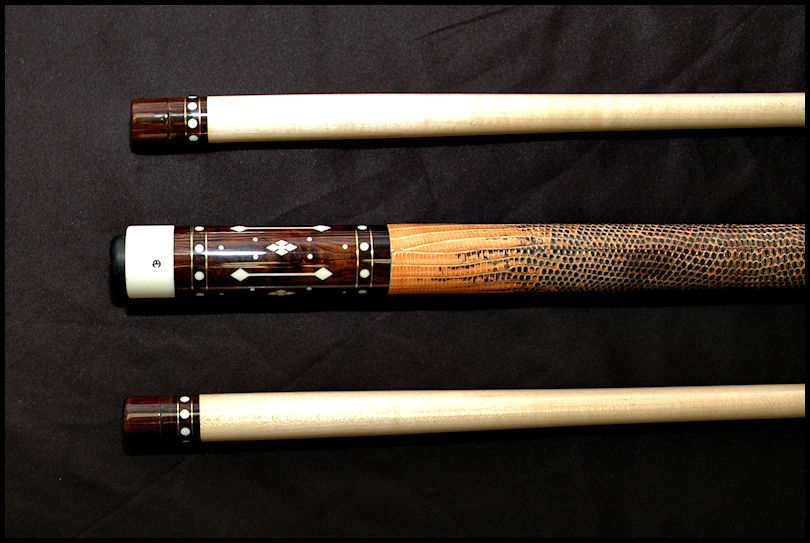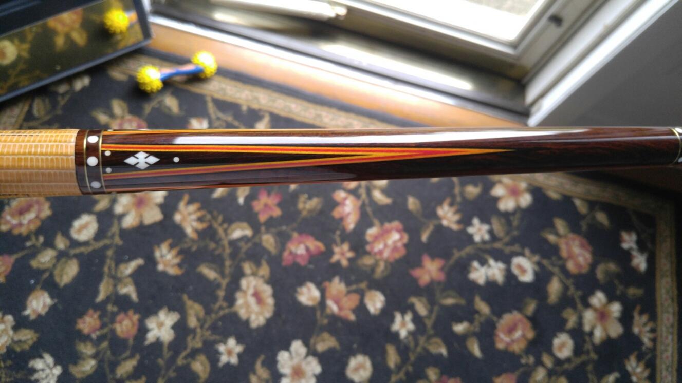 Up for sale is this very Rare Art Cantando finished in Roswood over Roswood with over 144 inlays, 8 gold rings, Ivory Joint. and 2 shafts. 29.5 inch Shaft 1-3.6oz 12.84 mil Shaft 2-3.7 oz 12.92mil. Butt is 15.7oz 29.5inches.2 new triangle tips This cue plays fantastic and if you knew Art, he would want you to play with it!!! Whether you are a serious collector or an avid player, you need this cue!!! For the fastest response,as I don't check Az often, please call 215-870-3980 or email mike@pro-auto.com.