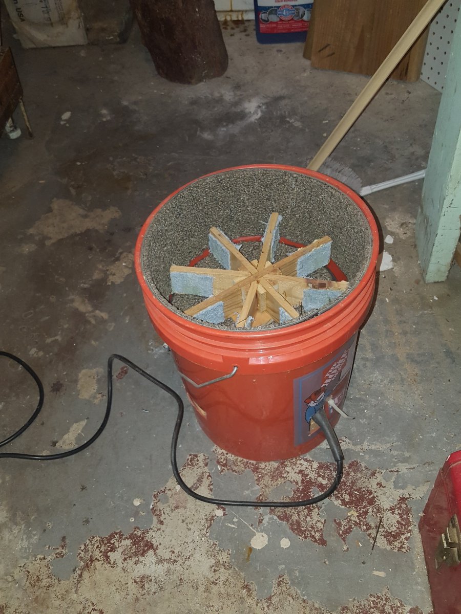 1. A homemade ball washer, works well but needs some adjustment as it vibrates a bit too much. Electric drill included.