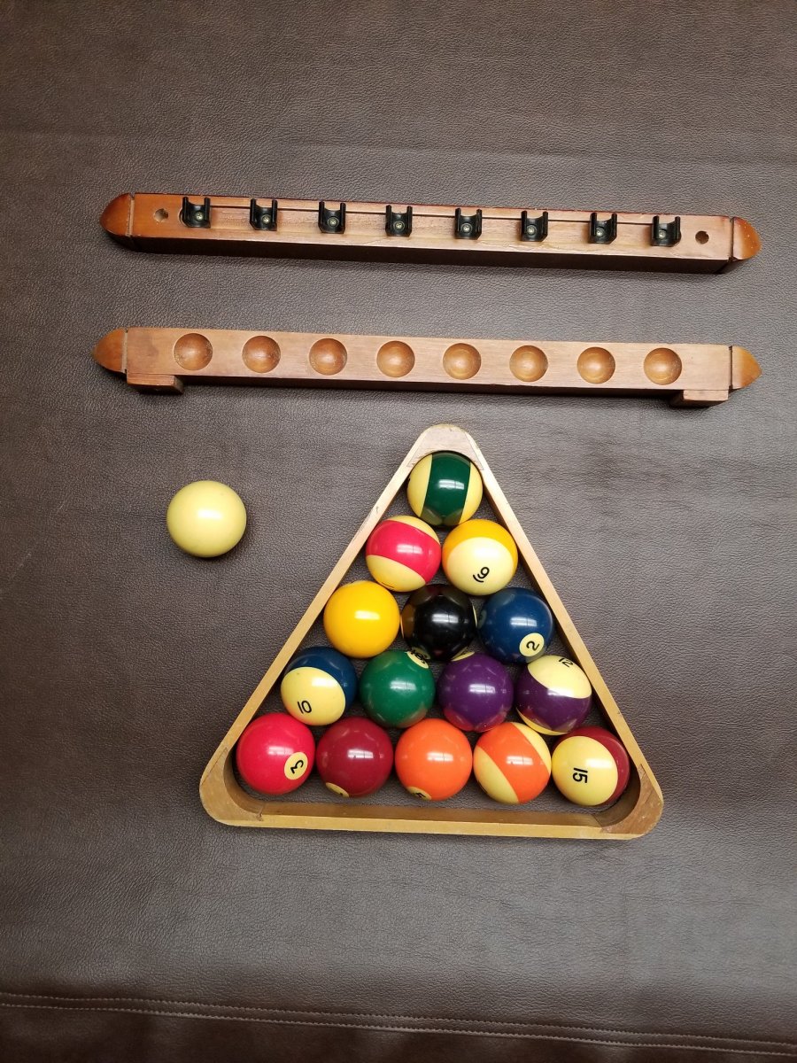4. Wooden ball rack and an inexpensive set of balls.