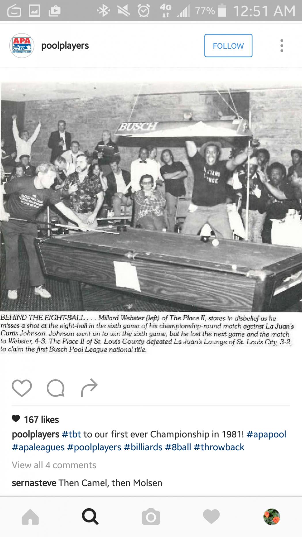 Many years ago, our pool room used to run Race to One, double elimination events. Lost a game to a guy who had never beaten me before. He literally ran around the pool room cue raised above his head in celebration. Think that was somewhat over the top. Laughed last as I still won the tournament!