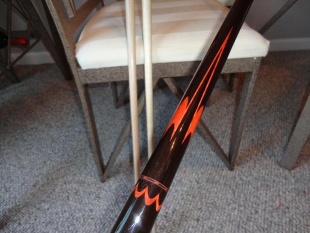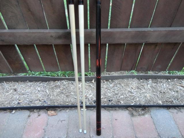 PRICE DROP!! Looking to sell or trade up my light play only Ebony on Ebony loaded with redheart butterflies and points Sugartree! Cue is just awesome in person and plays everybit as good as it looks. Butt weighs 15.1 and shafts are both 3.9 and come in a little over 13mm. The rings are amazing and there is grain in the ebony handle like ive never seen before. Asking OFF TO EBAY firm or looking for 4 points with veneers ebony into maple forearm(something traditional) for trade. nateschade@gmail.com Thanks Nate