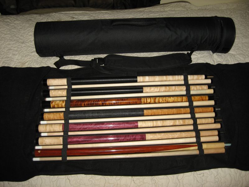I will also be taking these cues to Olathe this weekend for anyone that wants to see and hit with them. Just look for me, I will be the guy that looks like he is carrying a missle launcher around on his back