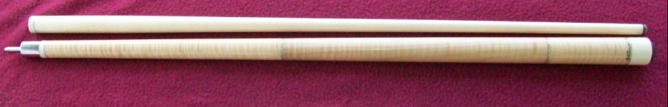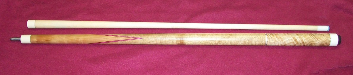 11th cue - purpleheart with 6 curly maple points. 19 oz with no weight bolt. Balance point is 20.5" from butt.