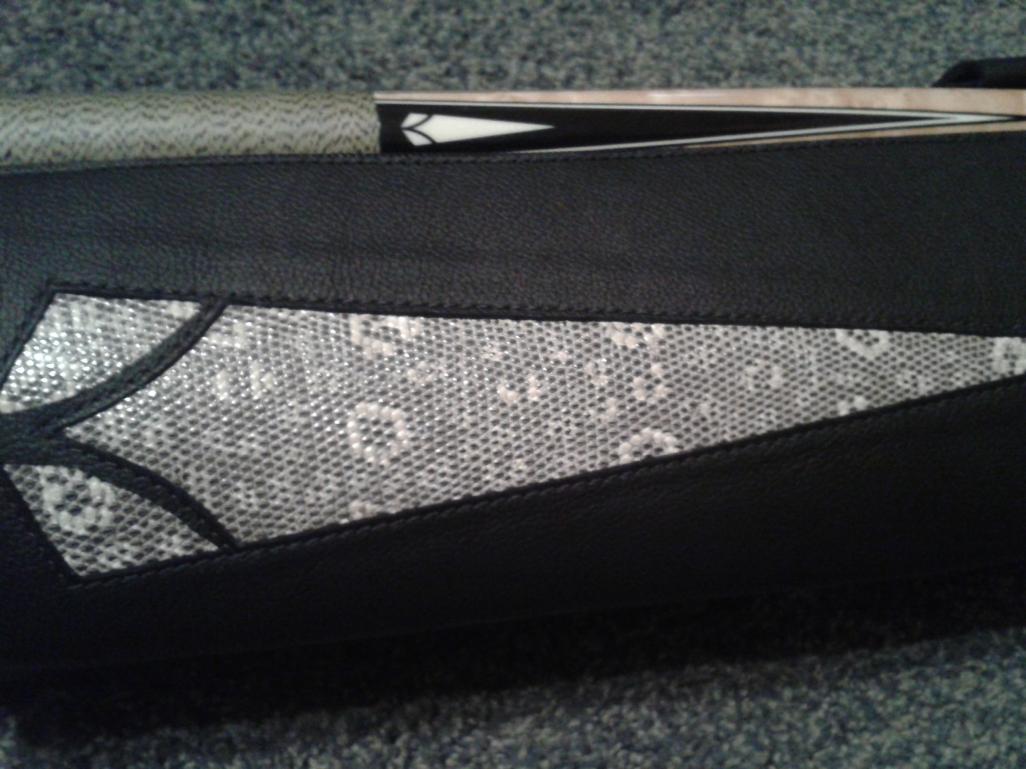 I'm a black and whit guy. White italian leather black accents silver hardware and tooling. Sorry pics suck the other case is a swift Thanks Nate