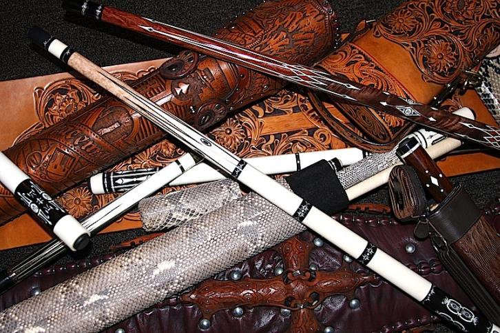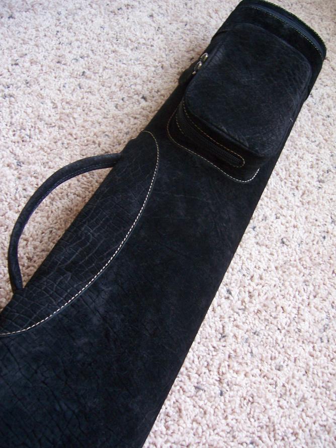 The interior works perfectly for a 1x2 high end Medieval Warrior cue that slides perfectly into the case interior with fully lined tubes and tooled leather.