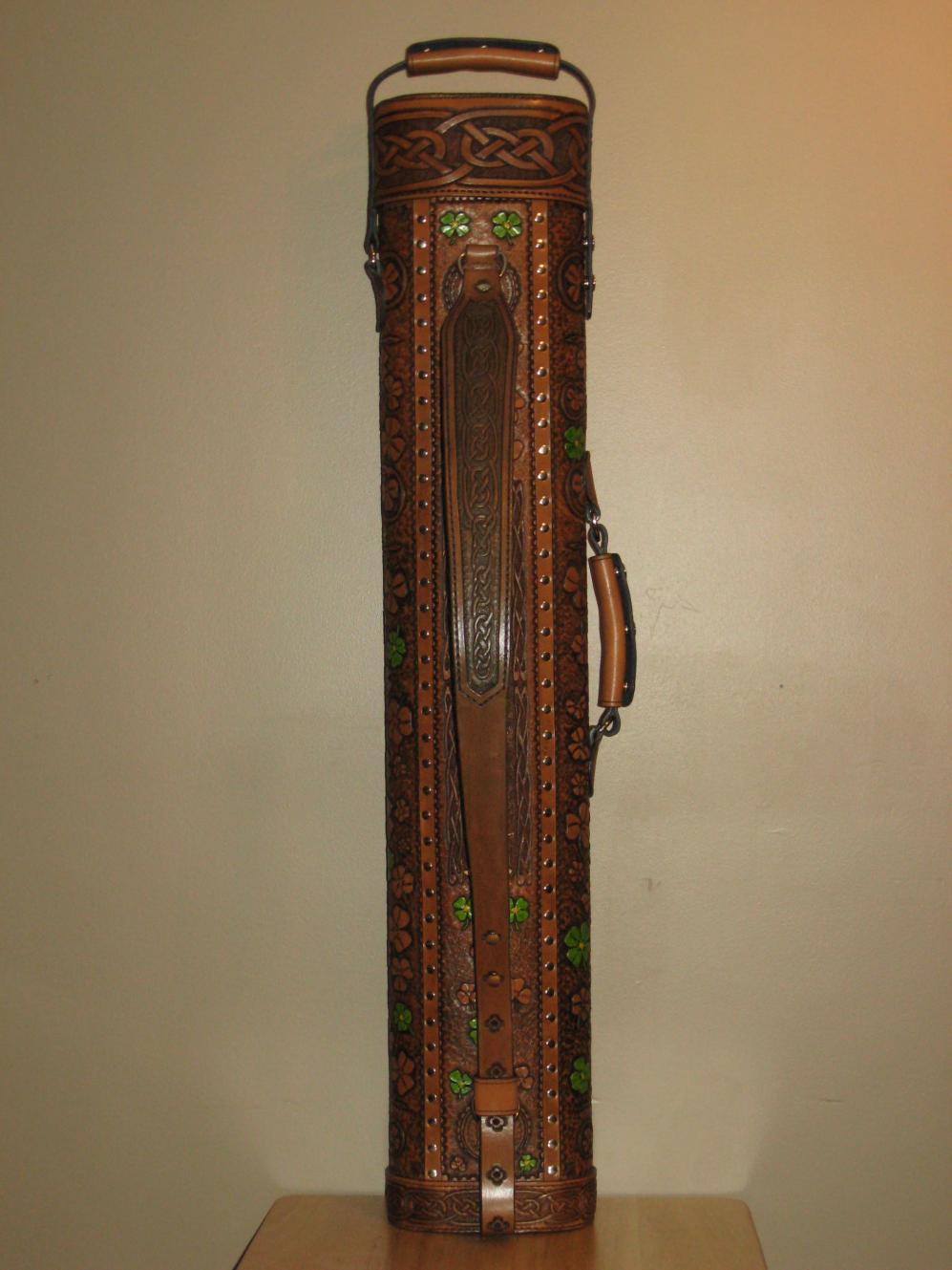 With some hesitation and at the behest of Mr. Will Prout, one of our most valued customers, as are all our customers who took a chance and ventured 'outside the box' with us on this journey. A side note, that I think you all may or may not be interested in, I approached Phil almost 20 years ago about making original one of a kind cases of this caliber. The first piece, The Cheif, Phil still has and ironically is still not finished. The body of work he has produced in less then 6 months since our first formal Ebay offering in July of this year as Quiverz Sport Cases, is nothing short of phenominal. Phil crafts each piece by himself without using stamps, or fabricators or even a template. Every tool mark, every rivet, every lace, every part of the process from conception to the finished product was done by his own hands. All while creating and selling Art in so many other mediums, its mind boggling. As his brother I couldnt be more proud and in this particular medium, I believe he has revolutionized the way players, collectors and case makers think about form and function. I'll shut up now and enjoy Will's case.
