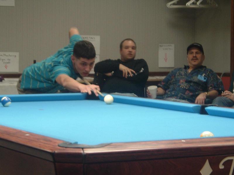JoeyA (LOL, the whole wkend I had JoeyA's avatar confused with cueJoey's avatar and JoeyA never corrected me. I know the difference between the two posters but for some reason I was getting the av's messed up.) JoeyA has a great game and was seen playing EVERYWHERE this week from the AZ room to across the street on the barboxes to the main tourney room.