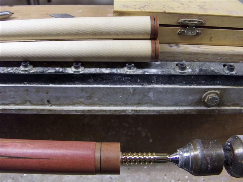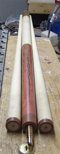 Here is a Pink Ivory forarm with 6 points of Bacote. Brown phenolic joints and buttplate. Brass radial pin. 2- 13 mm pro tapered matching ringworked shafts.
