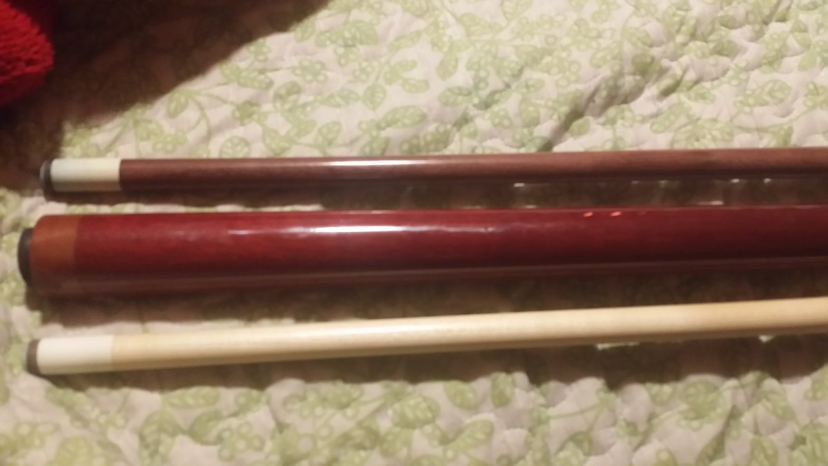I've played with this for a cue for about 3 years but with a different shaft so these shafts are basically untouched other than test hit. Shafts fit snug with joint and roll dead straight together and apart.