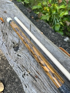 Bacote cue $595 This piece of bacote speaks for itself. This forearm is really eye catching . Comes with 1 shaft 19.25 oz 3/8x10 pin Check out more of my cues on my website Www.cgcues.com