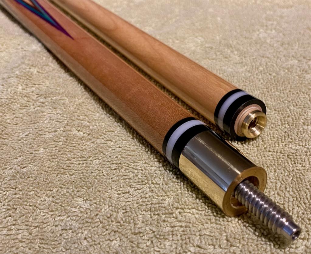 This is my second solo conversion. Made from what I believe is some type of mahogany. Like a lot of you, I can not afford an original, so I decided to try my hand at making one. This was my first ...successful...taper pass, my first successful shaft and probably one of my best finish jobs. I decided to make the shaft 30", I figure if I want a 29" shaft later, it won't be an issue. The shaft was made from a vintage one piece house cue. My hats off to ALL the Cue makers out there, because this work is not easy. I've had quite a few of you that have been generous enough to share your knowledge with me and I so greatly appreciate that. I'll be winding down this venture in the near future and will be parting ways with ALL my shop equipment so stay tuned. A few more things to close out and I'm going to call it a success.