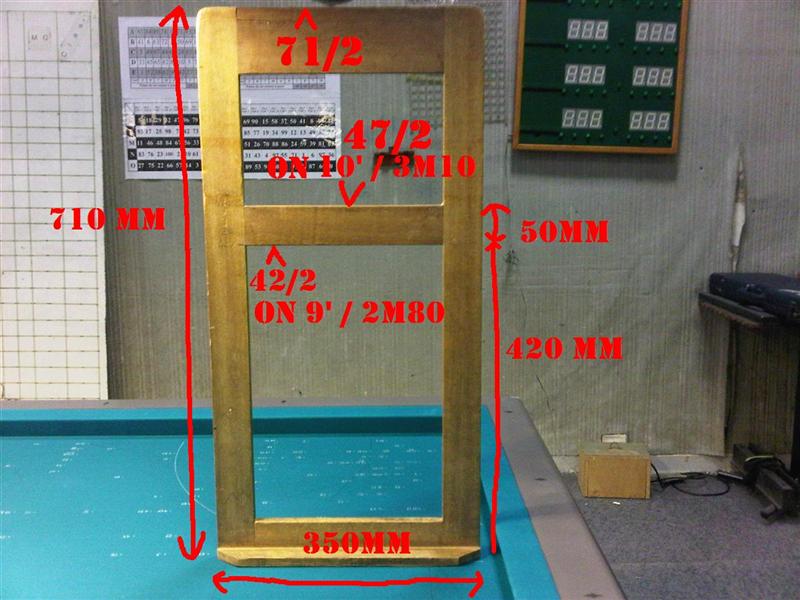 Tonight i'll take pics of the -old- balkline frame of my club, i'll measure it accuratly & i'll make a drawing, so everyone will be able to reproduce it.