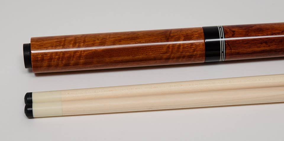 Up for sale is a like new BCM Merry Widow Style cue. It is only 4 months old! It is a beautiful Beeswing Nara wood, with black linen wrap. It has 2 shafts, both 12.75mm with black Kamui soft tips. Has fancy stitched rings in a,b,c,d,e positions, and rolls straight as an arrow!