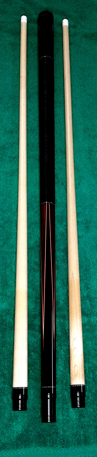Cue was built in 2012. It's my daily player cue for many years till I have another new one from Dave. So I asked Dave to do the refinish early this year. all be done just a week ago. Dave makes it like a brand new cue. repainting it and change an oil tanned spanish bull wrap on it. got the shafts as clean as he could. So it's in very good condition.