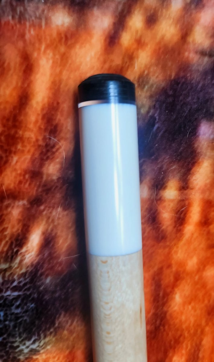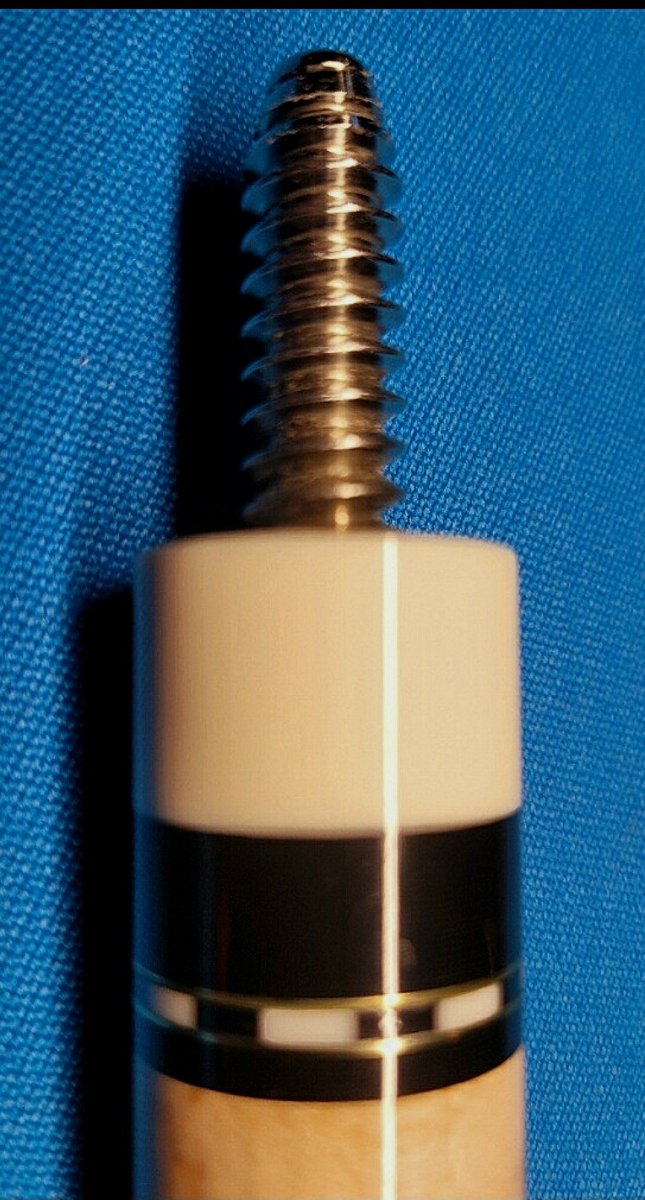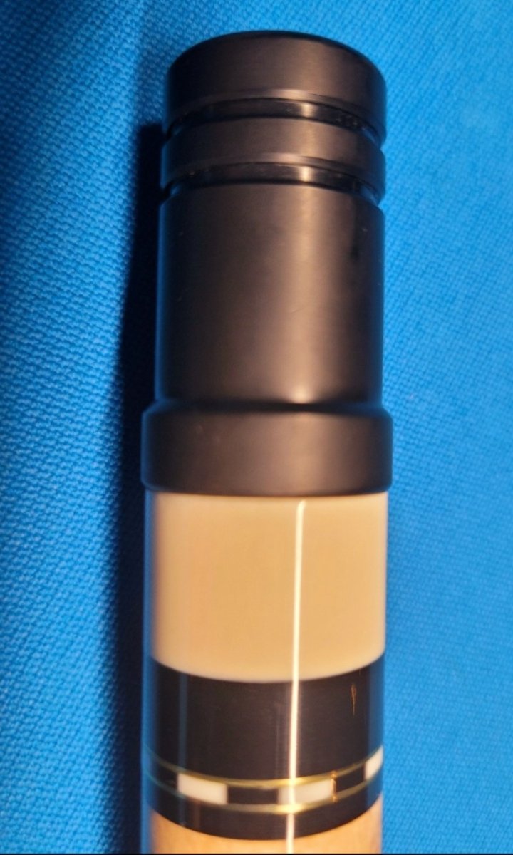 The butt weighs 13.9 oz. The Shafts are both 12.75 mm with White Natural Material Ferrules. Shaft 1 is 4.0 oz and Shaft 2 is 3.7 oz. Both Shafts are straight and are free of blemishes or dents. The 3rd shaft is a Jacoby Ultra Pro low deflect / squirt mated shaft. All 3 shafts are in like new condition, the Joint Pin is 3/8" x 10 tpi polished stainless steel.