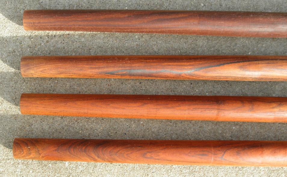 Beautifully grained COCOBOLO tapered - rounds, 1.13" x 1.37" x 18". Each is large enough for a forearm & butt. I've had this wood for 10-15 years. It was tapered in the fall of 2011. $60 for all 4 plus actual shipping costs. PM contacts only, 1st come, 1st serve. Shipped in CUSA ONLY...THANKS****** SOLD ******SOLD******