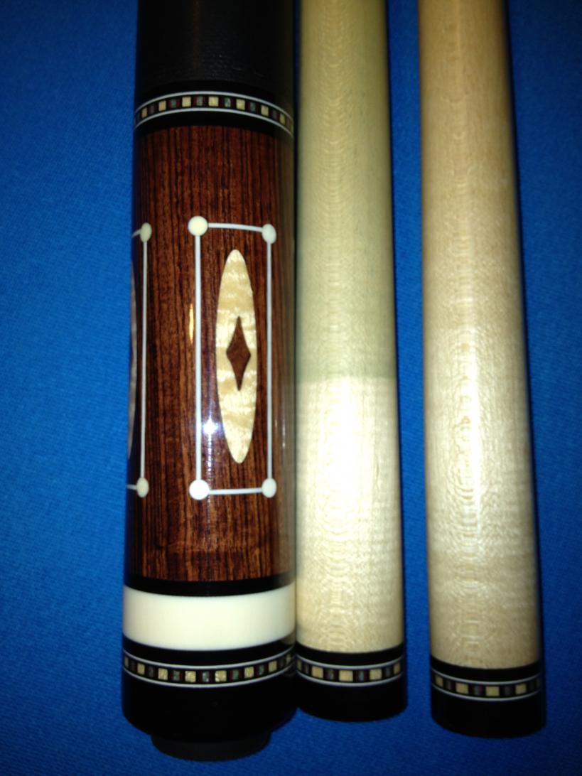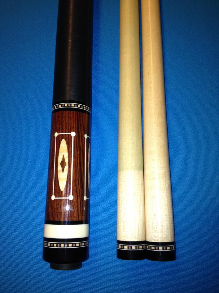 I have a Beautiful Andy Gilbert cue for sale. This cue has a lot of ivory inlays with a solid ivory joint. It has 4 high and 4 low points with ivory balls floating at the tips. The butt weighs 14.8 and each shaft weighs 3.8. One shaft is like new and rolls straight. The other shaft shows a little chalk residue and has a slight wobble. No dings in either shaft. Looking for $2,200 obo. I will be up at the Derby if anyone would like to see it in person later Thursday through Sunday around noon.