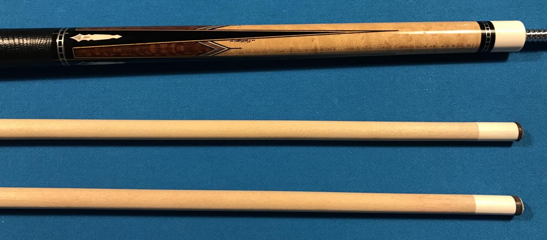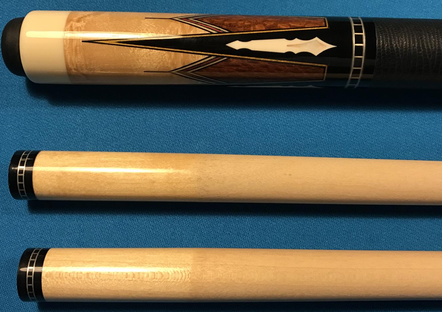 Only two flaws with cue . . . there is a chip in clear coat on butt (see pic) . . . one of the shafts needs a new tip (the other shaft tip is used but in fabulous shape!)